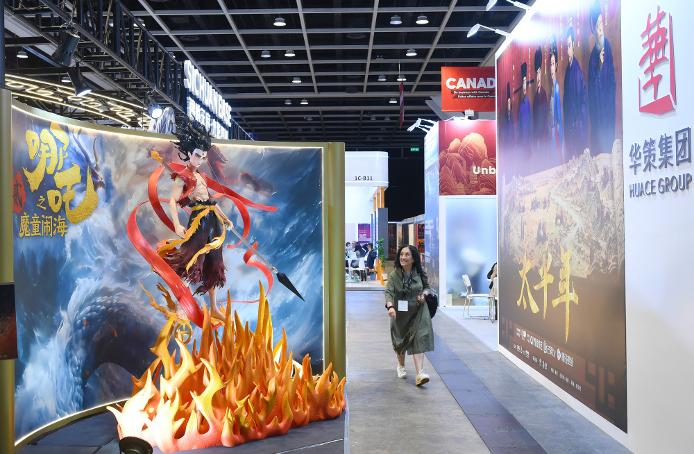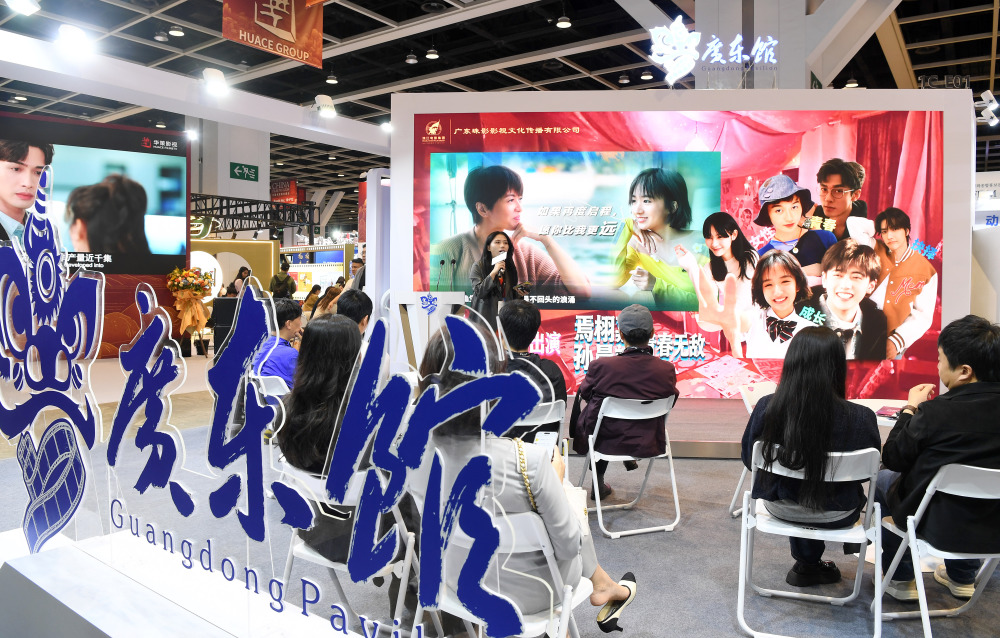 3月17日,参展商在香港会展中心广东馆推介影视产品。新华社记者 陈铎 摄