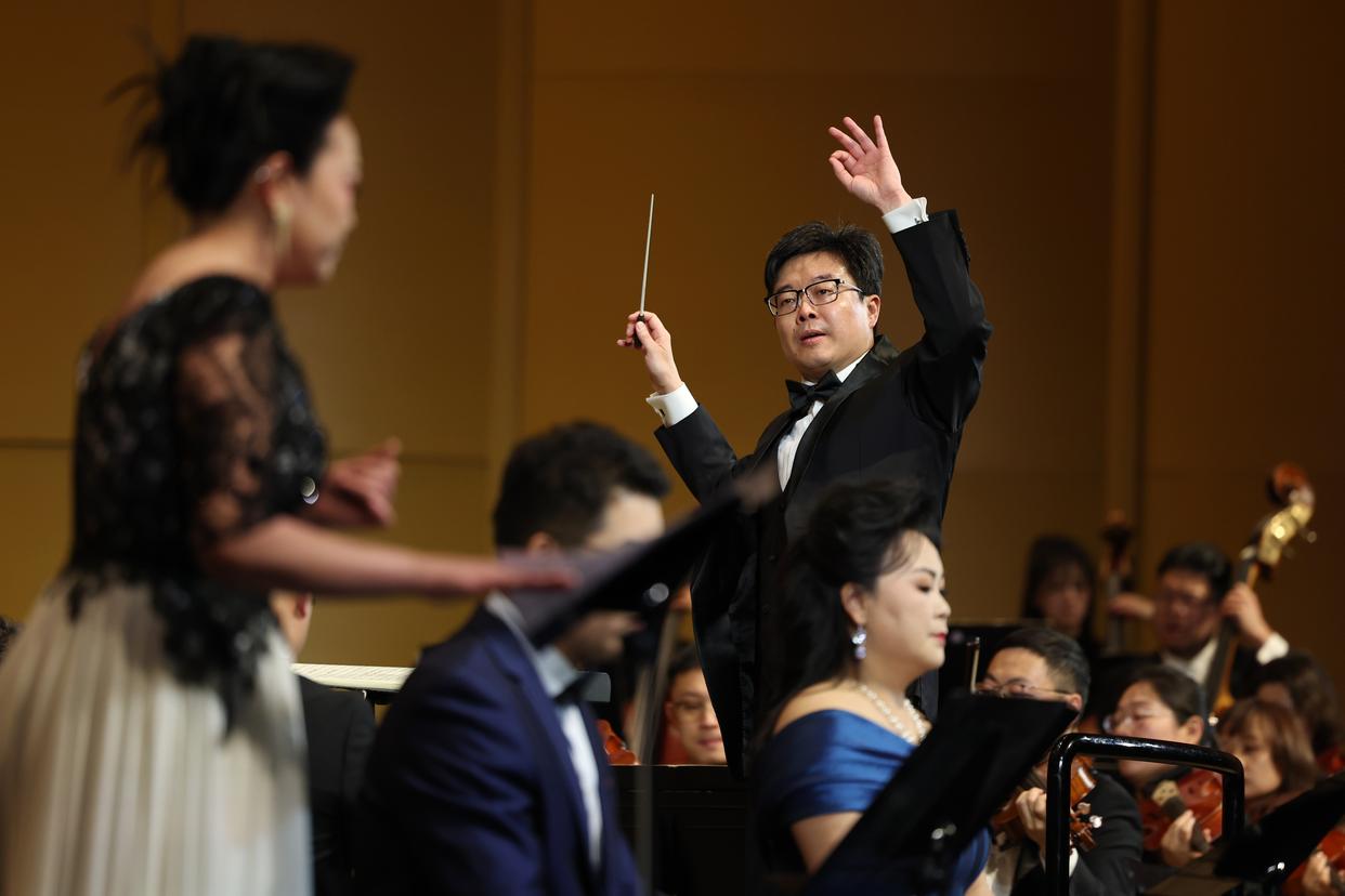 3月20日,指挥家金野在黄河·兰州2026音乐季的开幕音乐会现场指挥。新华社记者 陈斌 摄
