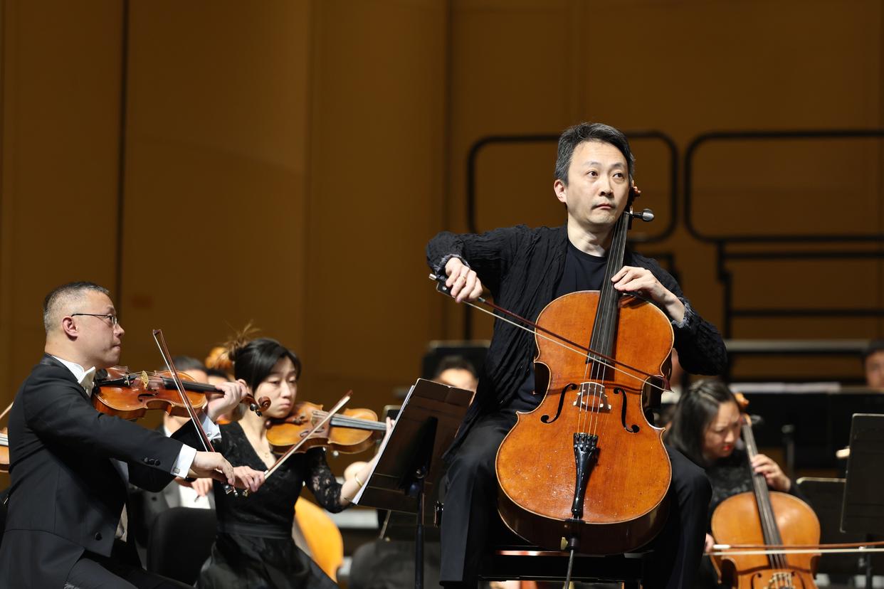 3月20日,大提琴演奏家朱牧(前)在黄河·兰州2026音乐季的开幕音乐会上表演。新华社记者 陈斌 摄