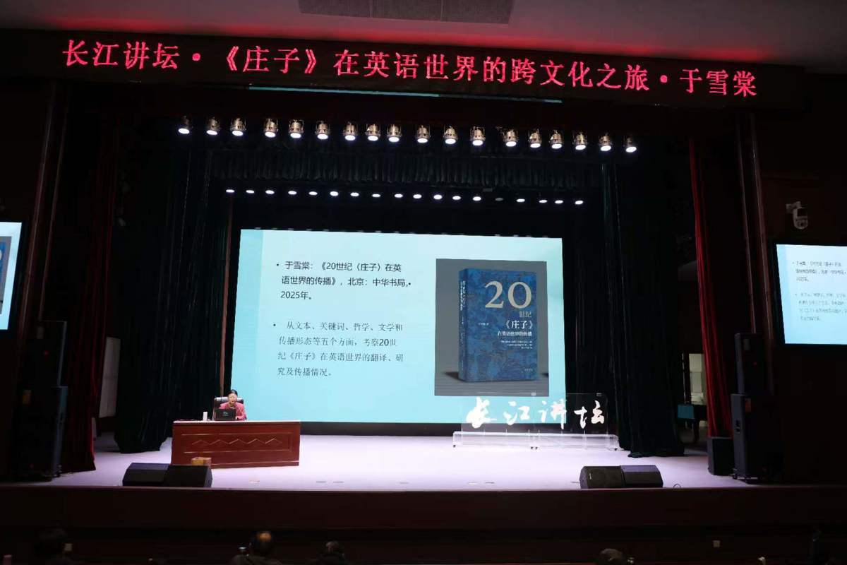 3月21日上午,长江讲坛迎来一场精彩的文化分享,北京师范大学文学院教授于雪棠带来《〈庄子〉在英语世界的跨文化之旅》主题讲座,武汉理工大学外国语学院近百名学生到场聆听,和现场观众一起探寻这部道家经典走出国门的传播故事。