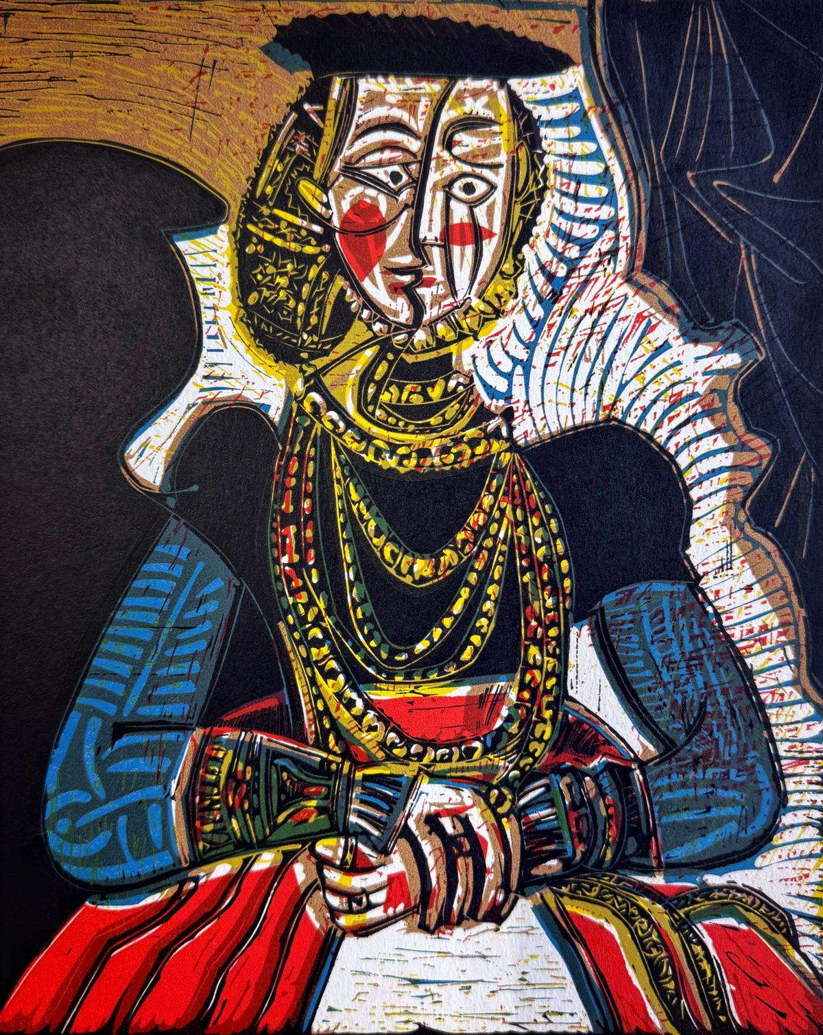 《女士肖像——致敬小克拉纳赫》毕加索绘制(1958年)印制(1962年)25×18cm 胶麻版画
