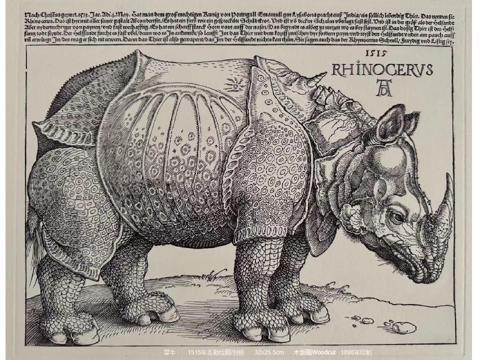 《犀牛》丢勒绘制(1515年)印制(1898年)32×25.5cm 木版画
