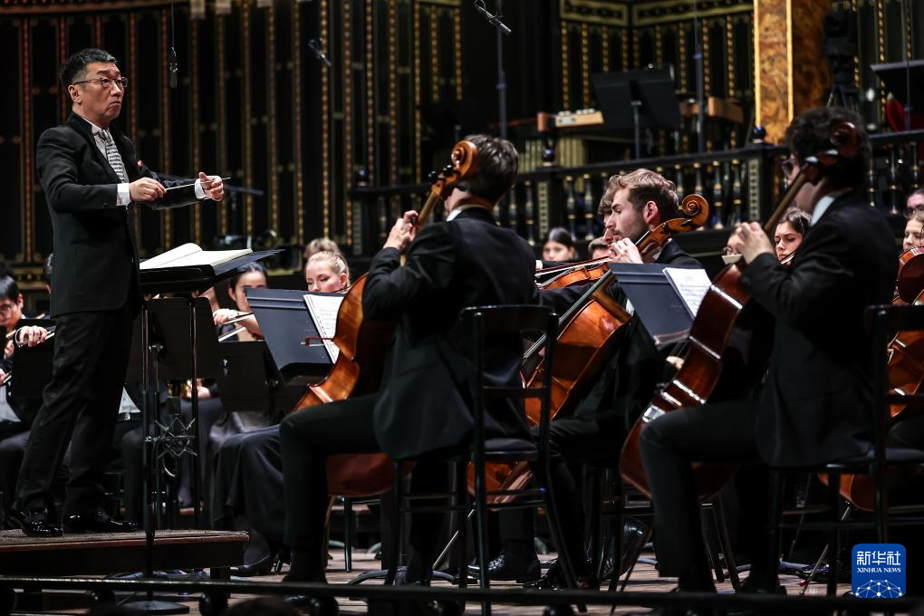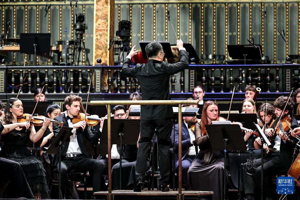 3月25日,在匈牙利布达佩斯,中国音乐学院院长李心草在中匈友好交流音乐上指挥。