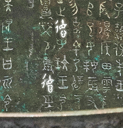 青铜器大盂鼎铭文中的两个“德”字。李京擘摄