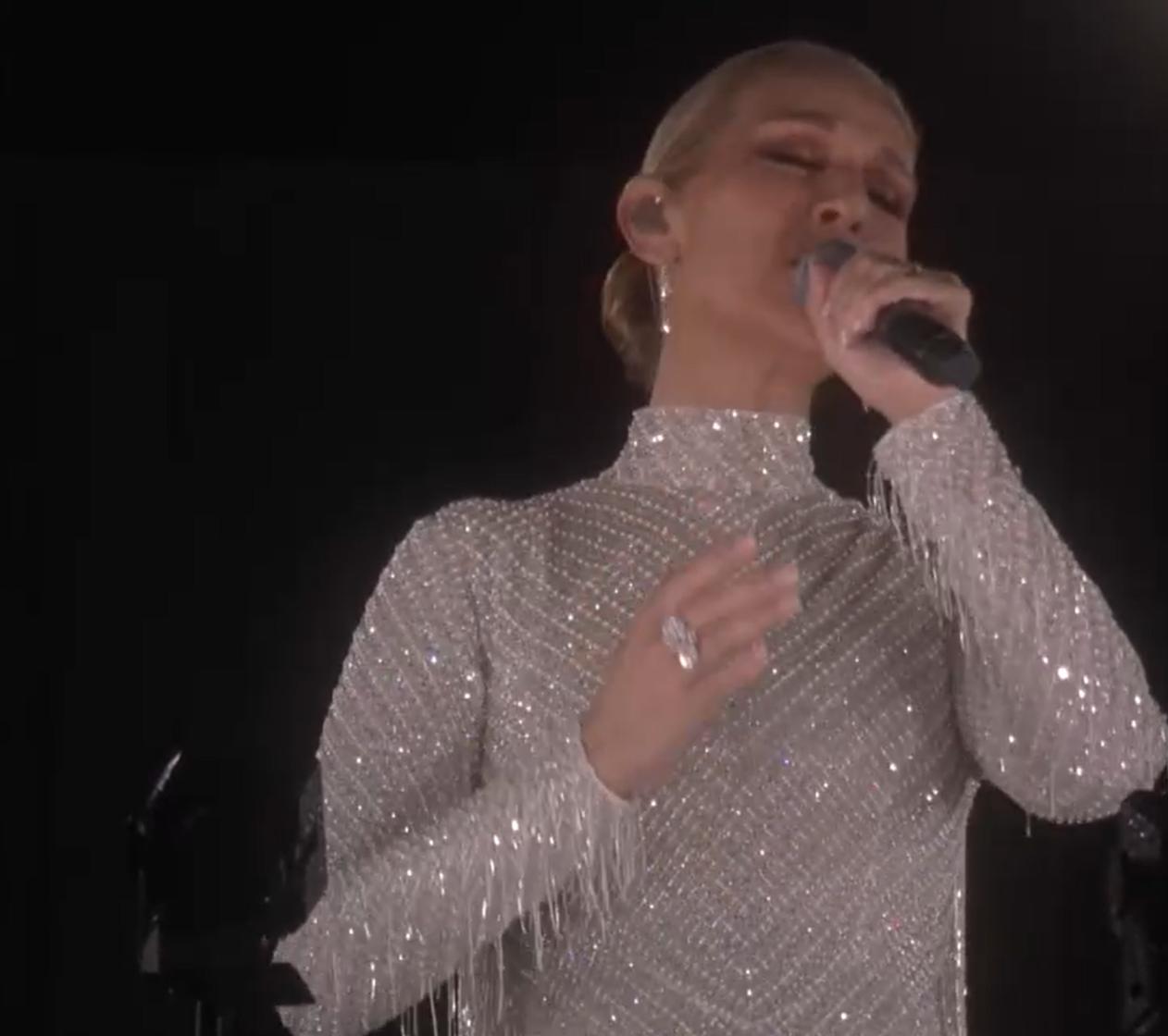 2024年巴黎奥运会开幕式上献唱的席琳·迪翁(视频截图)