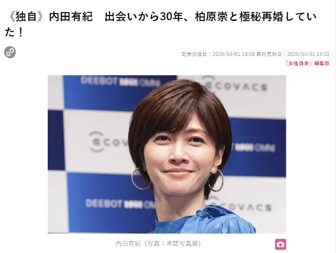 据悉,内田有纪所属公司"Ten Beans合同会社"的业务执行股东名称于2026年3月24日变更为"柏原有纪",法律上证实二人已婚。