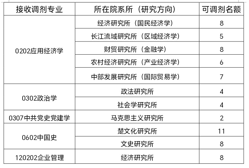 按照相关要求,根据湖北省社会科学院2026年硕士研究生拟招生计划和一志愿考生拟录取情况,我院应用经济学、政治学、中共党史党建学、中国史、企业管理(学术学位,普通计划全日制)有缺额,在全国范围接受调剂,现公告如下:
