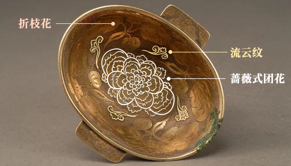 内底中心刻有一朵蔷薇式团花