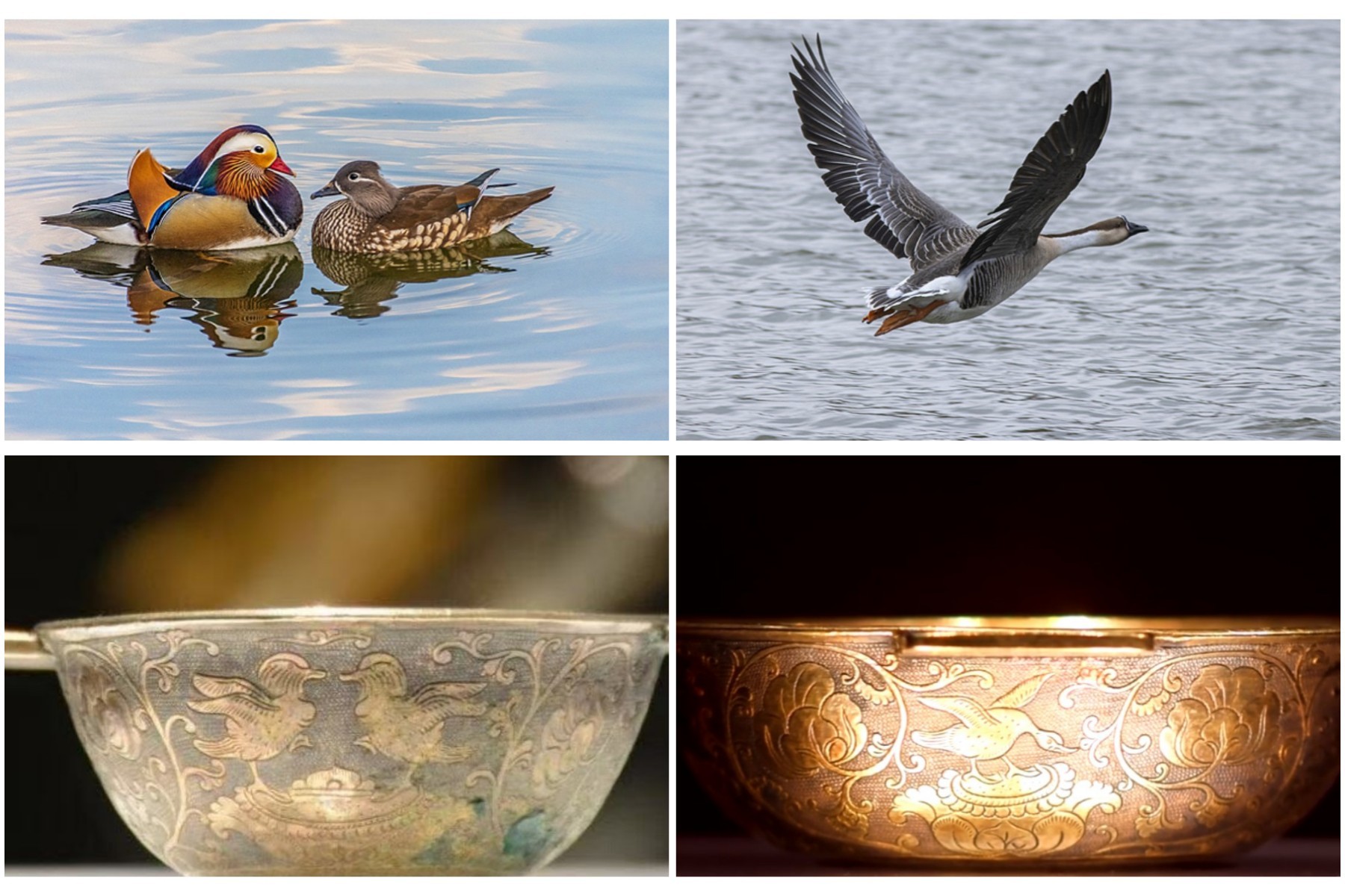 △鎏金蔓草鸳鸯纹银羽觞(一对),陕西历史博物馆藏