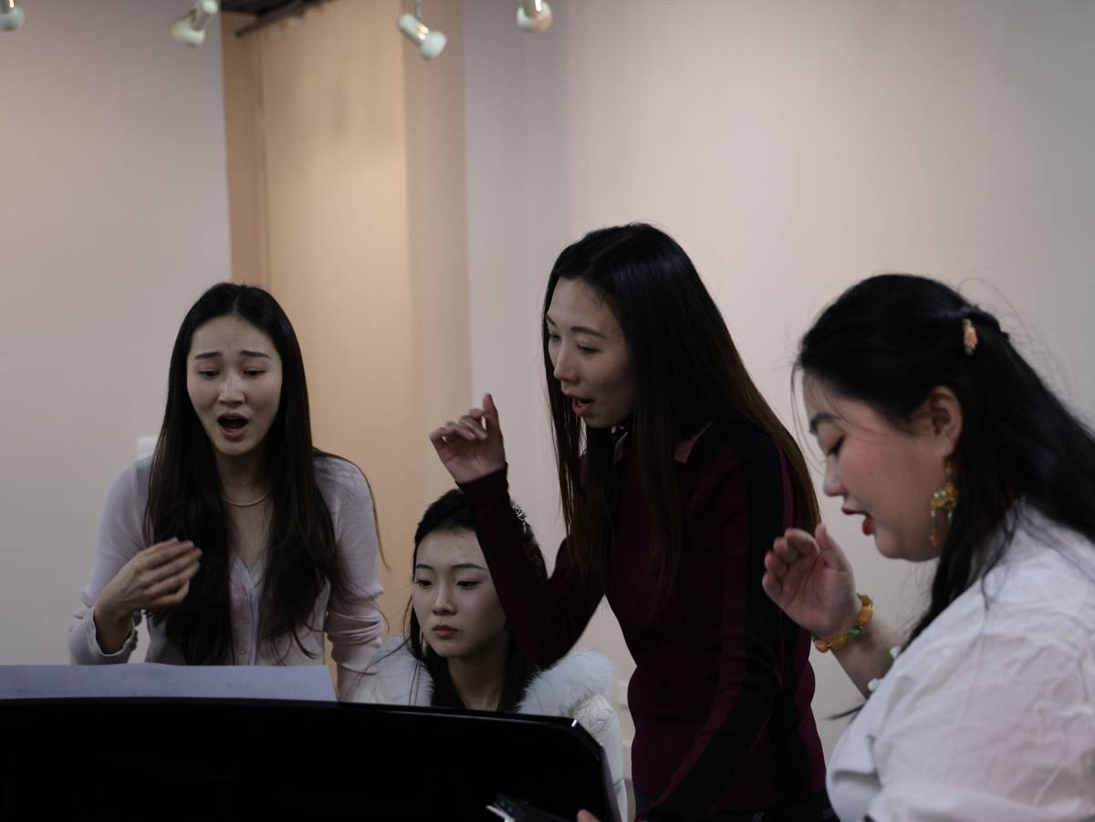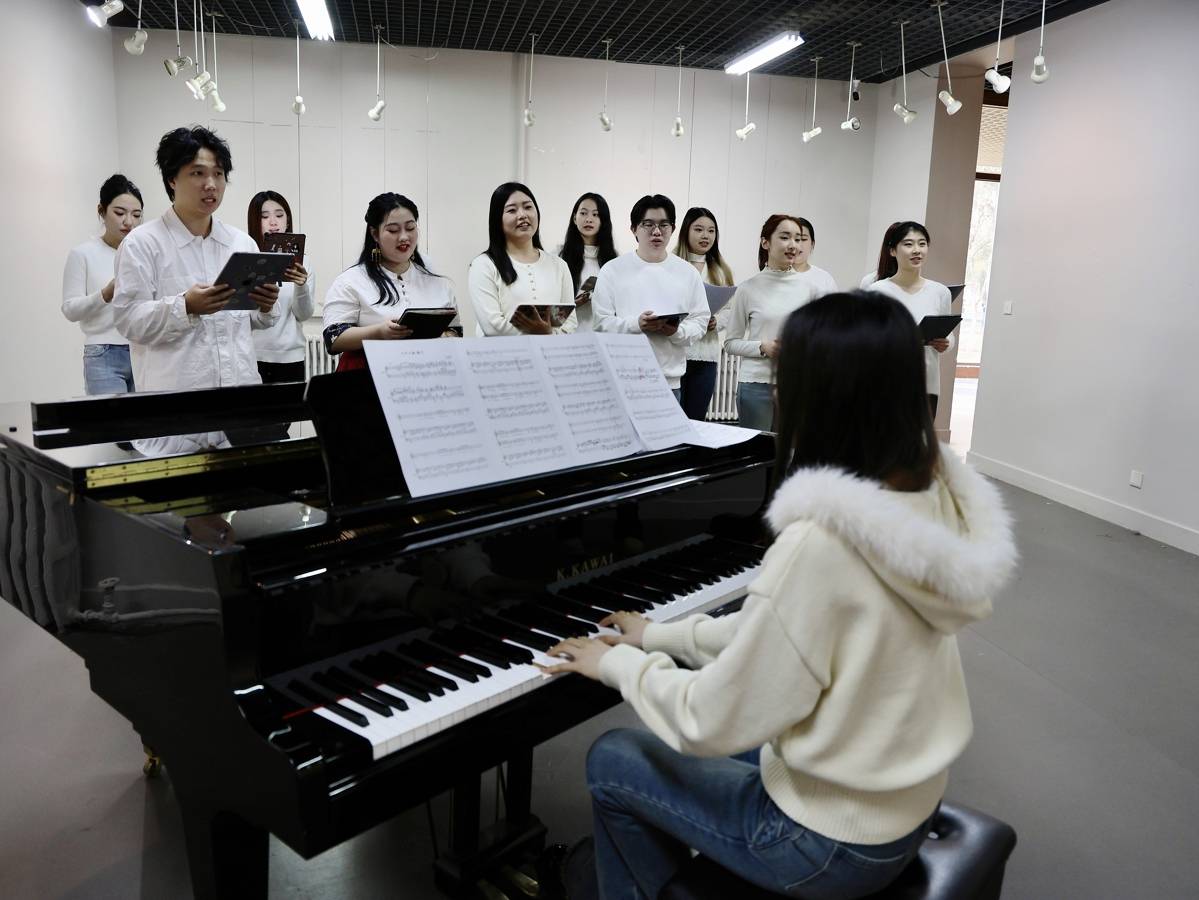 4月2日晚,北京语言大学艺术学院教室,2025级硕士杨惠竹正和同学反复弹唱一段既熟悉又陌生的旋律。