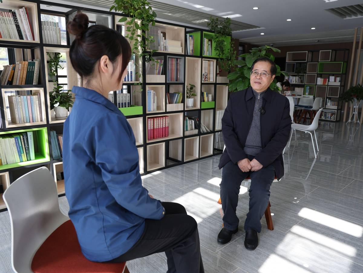 中国闻一多研究会会长、武汉大学教授陈建军接受湖北日报访谈。(湖北日报全媒记者 刘毅 摄)