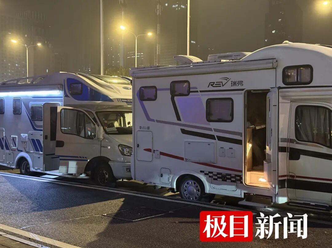 4月9日晚,新闻记者在岳家嘴看到,多台《寻子遗迹》剧组车辆停放在路旁,其中两辆房车为男女主角专用。