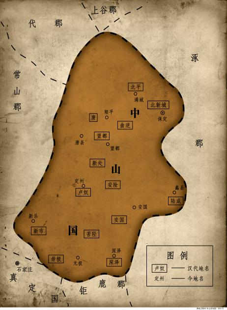 △西汉中山国地图,国都卢奴(即今定州)。