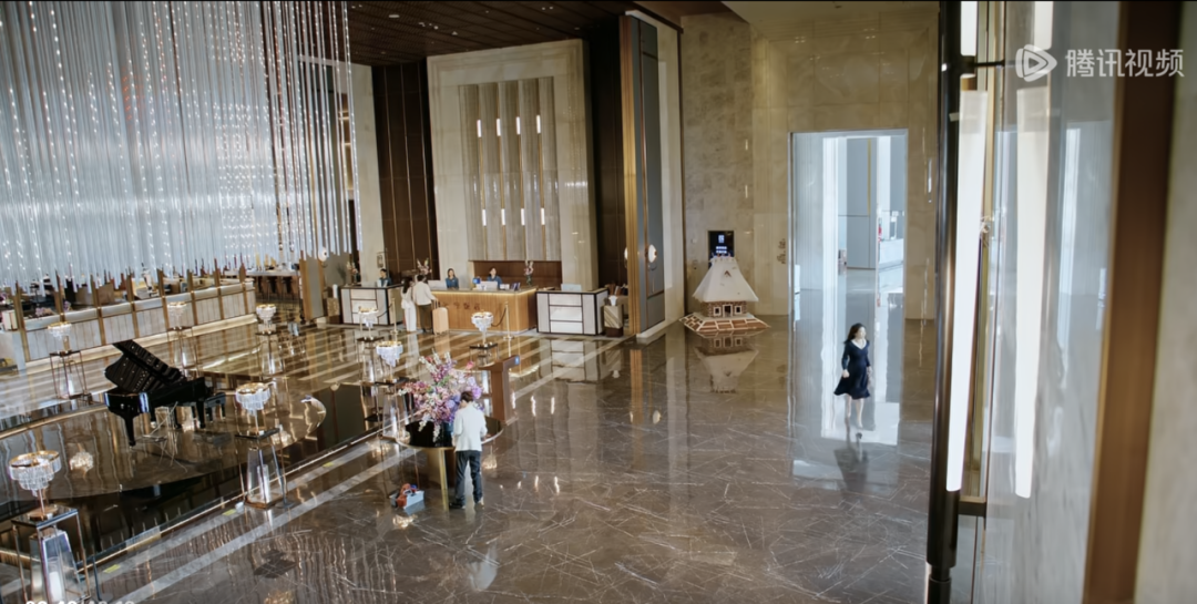 女主许蜜语(朱珠 饰)去酒店给丈夫聂予诚(经超 饰)送西服,发现丈夫出轨了小三鲁贞贞(李梦 饰),许蜜语跑出酒店的镜头,扫到了洲际大堂的钢琴。