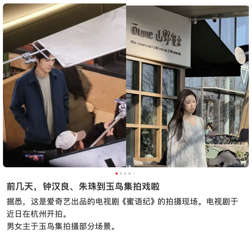 此前也有不少网友偶遇剧组在良渚洲际、玉鸟集、安放山泽里、朝晖新市街、杭珹未来中心、南园餐厅等地取景。