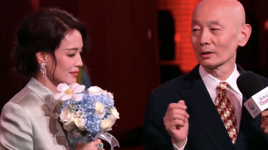 在全场观众的掌声中,“葛大爷”带着鲜花走向舒淇,并解释说自己送花有两层含义,“第一呢,是好久没见了。再一个呢,她当导演了,而且还获奖了,以后有戏要想着我!”