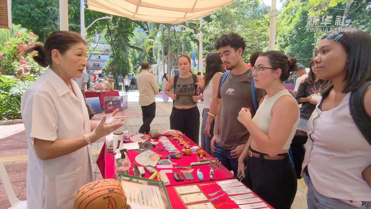 舞台上,巴西学生深情演绎中文歌曲《萱草花》,并带来舞蹈和中国武术等精彩表演。中国美食、汉服、中医体验等活动,让参与者沉浸于中国文化的多彩魅力之中。