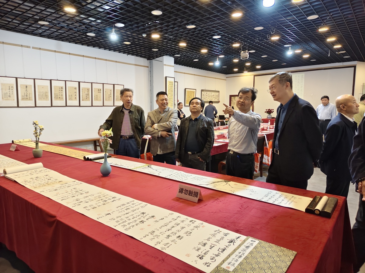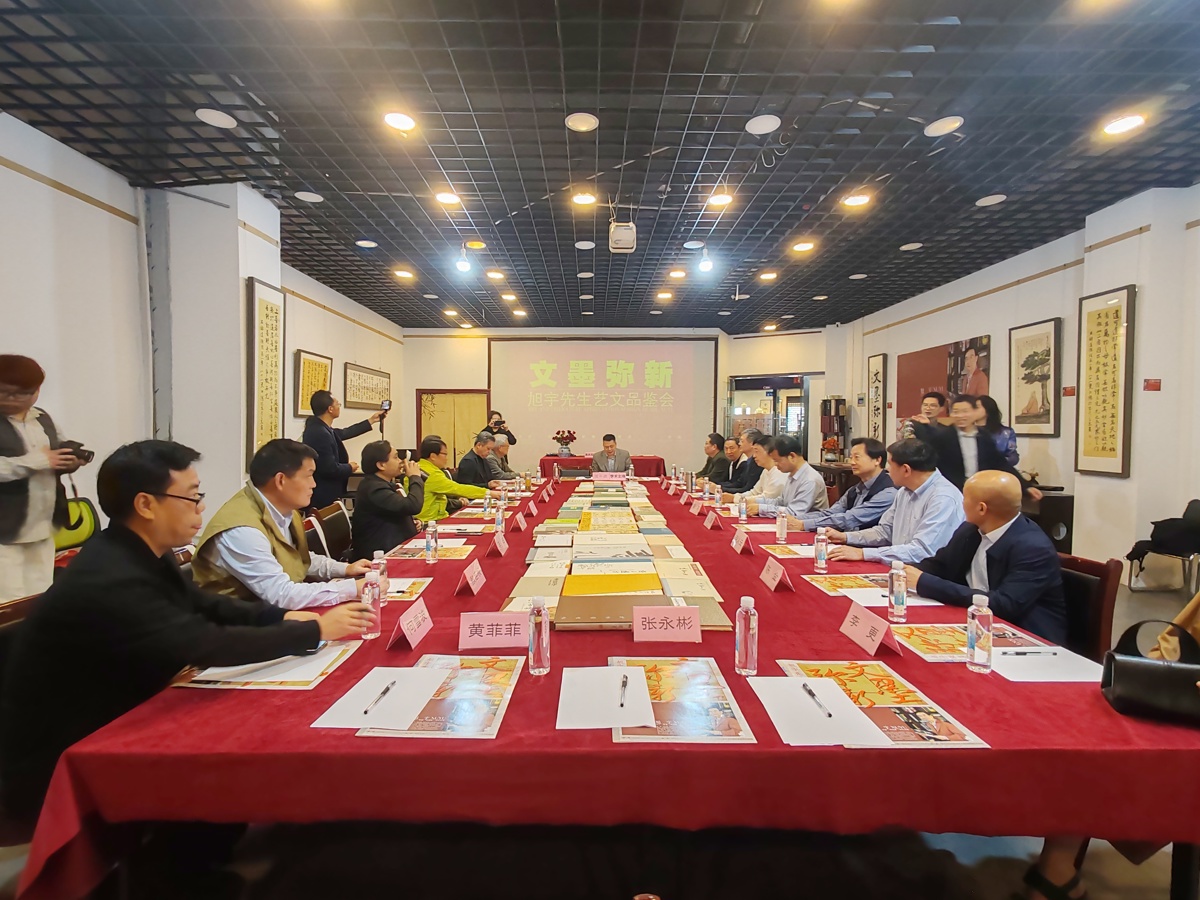 本次品鉴会以简约厚重的雅集形式开展,现场集中展出旭宇先生楷书、行草、册页、题跋及八秩之后创作的文人画作品,同步陈列其诗集、书论、艺术研究等多部著作,全方位呈现“诗、书、画、文四位一体”的艺术风貌。作品笔墨精到、文气充盈,观者驻足品读,于笔墨间见文心,于章法中悟书道,尽显传统文人艺术的深厚底蕴与时代新意。