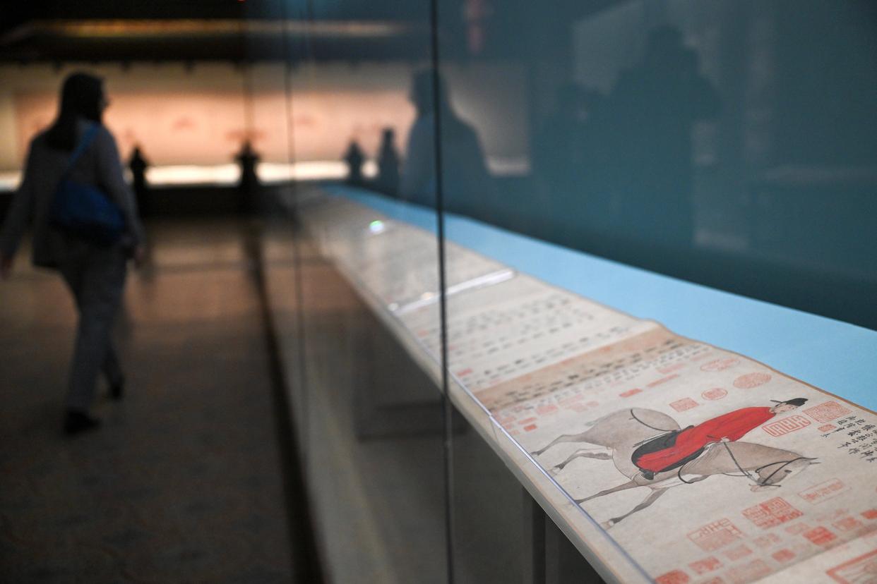 4月21日拍摄展出的元代赵孟頫《人骑图》。新华社记者 金良快 摄