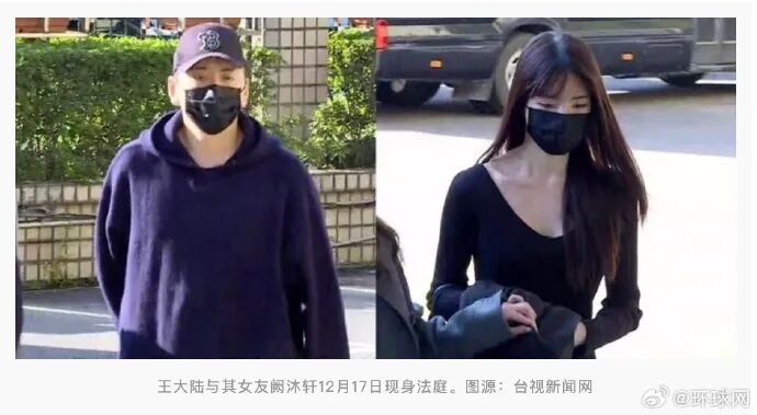 环球网2025年12月17日报道,据中时新闻网、台视新闻网等台媒,新北地方法院当日上午针对台湾艺人王大陆逃避兵役“案外案”(涉嫌非法查阅个人资料)第三度开庭,法官传唤王大陆、王大陆的女友阙沐轩及“高阶”警察刘居荣到庭,三人进入法庭时皆一言不发。