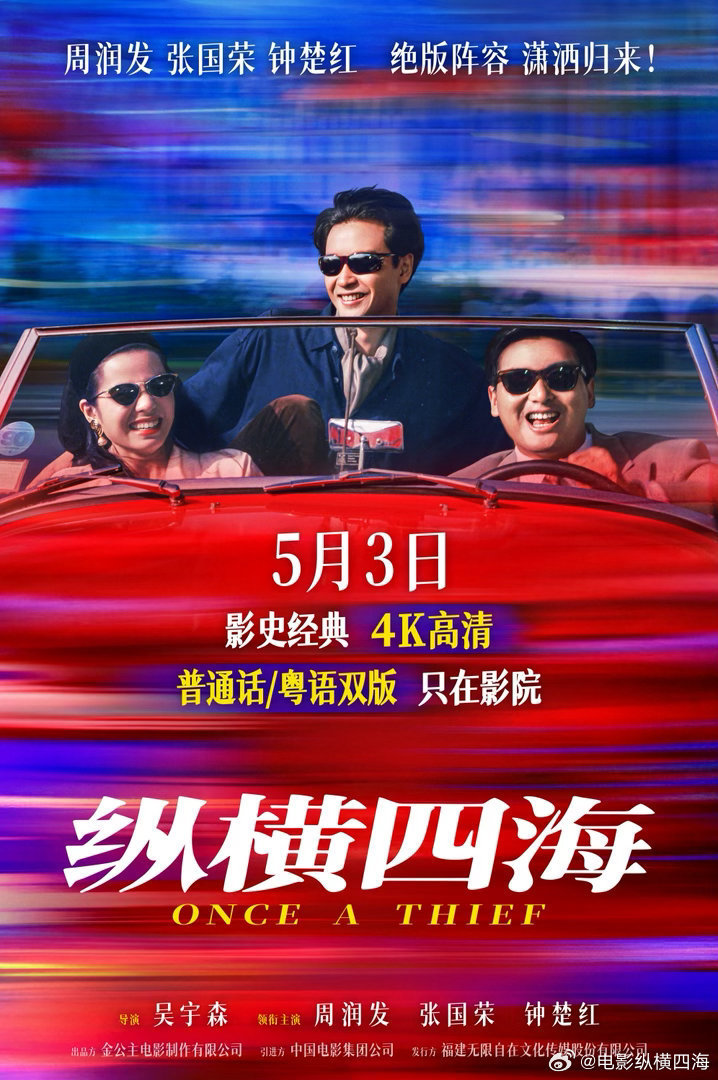 由吴宇森执导,周润发、张国荣、钟楚红主演的《纵横四海》时隔35年首次在内地公映,其全新4K高清修复版定档5月3日。