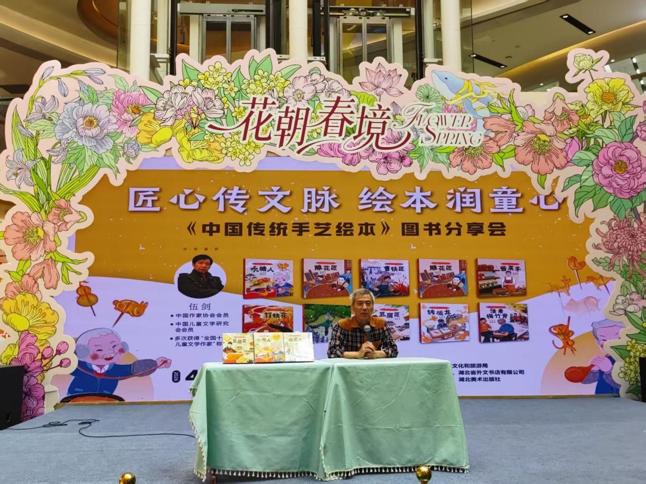 4月19日,《中国传统手艺绘本》图书分享会在武汉青山印象城举行。中国作家协会会员、儿童文学作家伍剑带领孩子们走进打铁花、吹糖人、锔瓷等非遗世界,感受传统手艺的魅力,传承匠心力量。