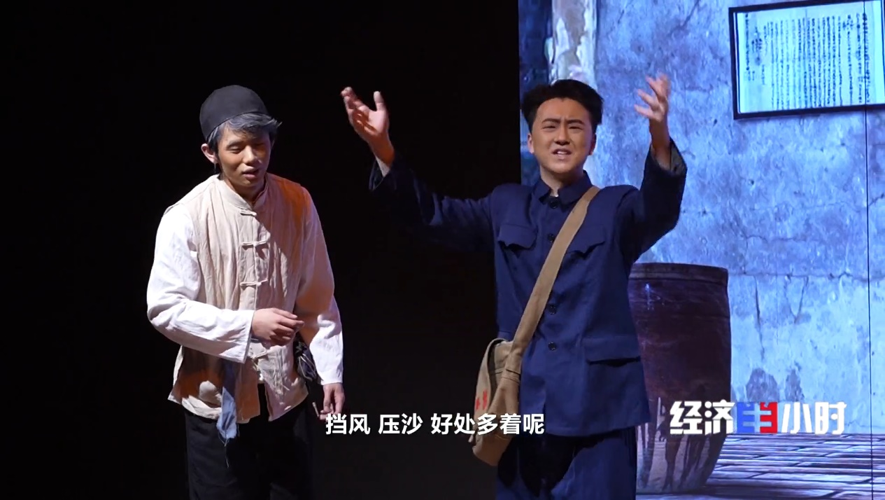 这出剧目以情景剧的方式,再现当年河南兰考县委书记焦裕禄“冒雨查灾”和“泡桐治沙”等场景,沉浸式的书本剧,让观众收获了与纸质书不一样的视觉冲击和心灵震撼。