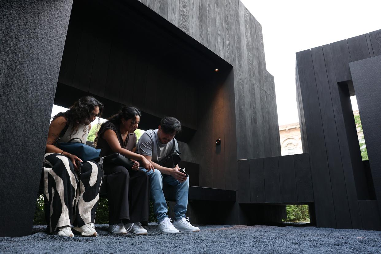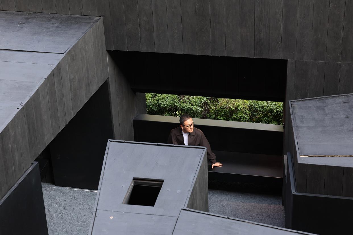 4月20日,在意大利米兰大学,中国设计师吴滨与艺术装置《奥庭》亮相米兰设计周。新华社记者 李京 摄