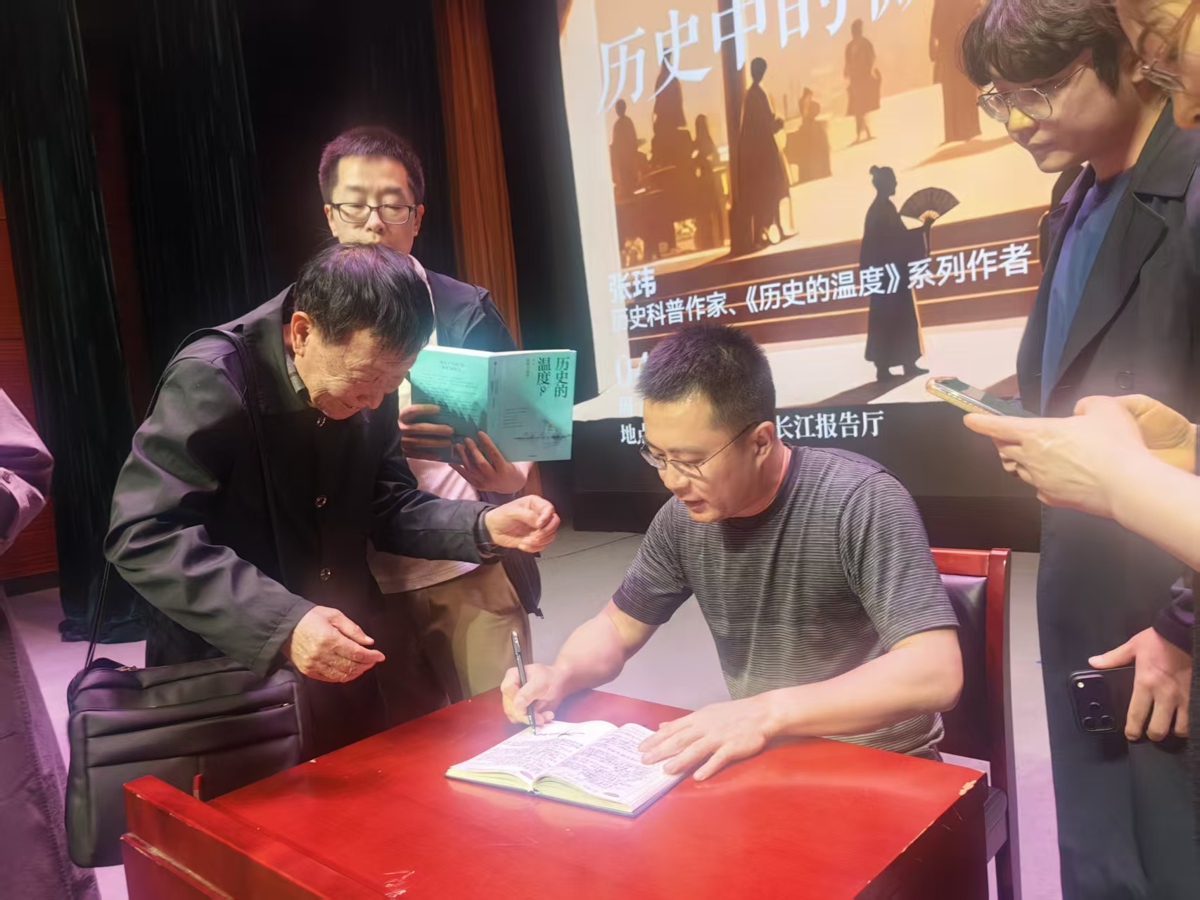 签书环节排起长队,气氛温馨而热切。面对读者、听众的热情,张玮毫不犹豫改签了返程高铁,只为尽可能多为每一位等待的听友签名、合影,留下珍贵记忆。听友们纷纷表示,这份真诚与温度,正如他笔下的历史一样动人。