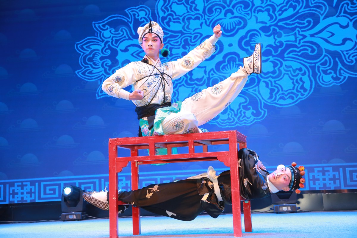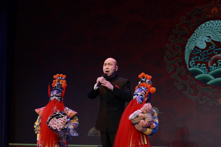 值得一提的是,现场,京剧名家、牡丹花大奖得主江峰带着两个小弟子登台的《赤桑镇》段落成为亮点。