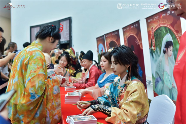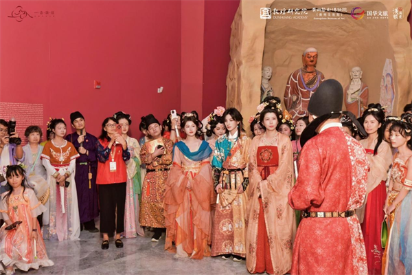 展演结束后,策展人与汉服博主现场签赠互动,与汉服同袍畅谈国风文化;随后,汉服巡游队伍穿行于场馆内外,华裳流转、古韵悠扬,成为展厅内外一道流动的国风风景线,让敦煌之美以更鲜活、更亲近的方式,触达每一位观众。