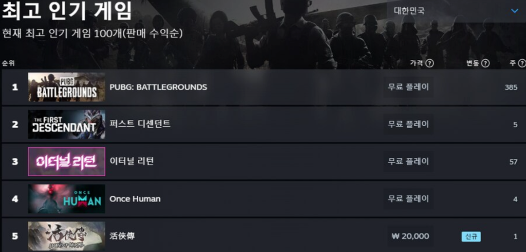 《活侠传》登上韩国Steam榜单。图源网络