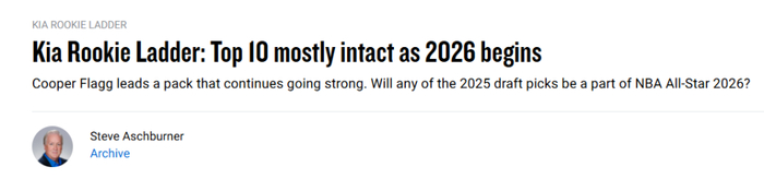 来源:罗说NBA 北京时间1月8日,NBA官网更新了新秀榜,独行侠状元弗拉格继续领跑,黄蜂4号秀克努佩尔排名第2位列第3-5位的依次是76人探花埃奇库姆、鹈鹕13号秀奎因和灰熊11号秀考沃德以下是具买球官网平台体排名和解析——。